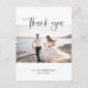 Hochzeit Foto danke Ihnen Postkarte. Dunkelschwarz-weiße Kalligraphie. Zentriertes Foto mit Namen und Datum. Die Rückseite ist leer für eine persönliche Nachricht mit einem kleinen Herz unten. Entworfen von Kimberly Brett.