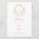 Dieses Programmdesign hat ein Aquarellblatt-Wappen, das Ihr Monogramm umgibt, und enthält die Reihenfolge der Veranstaltungen und die Einzelheiten des Brautparty. Dieses Design stimmt sich mit anderen Designs aus der Sweet Wappen Monogram Wedding Collection ab.