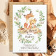 Niedliche Dusche in Aquarellwald mit einer bezaubernden Mama & Babyfox mit Kiefernästen mit Pineconen und einem bräunlichen Hintergrundehintergrund. Ideal für eine Babydusche oder eine geschlechtsneutrale Babydusche