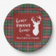 Niedliche Zuhause Sweet Zuhause Weihnachtspapier-Teller können Sie leicht anpassen, indem Sie auf den "Personalize"-Button klicken, mit Hirsch-Silhouette und Clan MacCulloch tartan in grün-rot karierten Mustern. Ideal für Ihren Aufenthalt während der Ferien. Macht ein großartiges Geschenk für die Hauswärmung