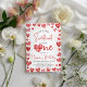 Sweetheart-themed first birthday invitation featuring red and gingham hearts, bows, and soft romantic typography. Perfect for Valentine-inspired or heart-themed birthday celebrations for a baby girl. This customizable invitation includes space for name, date, time, and party details, creating a charming and memorable keepsake for a first birthday party.