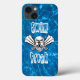 Swim Freak phone case set on deep blue pool water, with skull and cross bones, fein, goggle all done in white outlined in black.