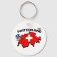 Die Rot-Weiß-Fahne der Schweiz überquert die Landkarte des Landes, gerahmt mit Edelweiß und enzian.