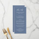 Modernes Hochzeitsmenü mit zeitgenössischem typografischem Design und eleganter Schriftzypografie. Im Folgenden finden Sie Ihre Veranstaltungsdetails in Ihrem Namen, Ihren Hochzeitstag und Ihr Menü in einem einfachen und minimalen Layout. Das Farbdesign ist staubblau und kann mit dem Designbearbeitungstool geändert werden.