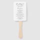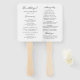 Moderner Hochzeitsprogramm Handfan mit zeitgenössischem typografischem Design mit den Headern in eleganter Schrift Typografie zusammen mit Ihren Details in einem einfachen und minimalen Layout. Das Farbdesign ist schwarz und weiß und kann im Designbearbeitungstool geändert werden.