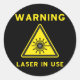 Gelbe und schwarze Laserwarnsymbol mit Warnhinweis.