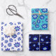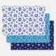 Farbenfrohe gemusterte Geschenkpackung in Blau und Weiß mit einer wasserspritzenförmigen Version des symbolischen griechischen Auges.