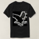 Eine stilisierte Darstellung eines Glatzenadlers im Mittelflug, dessen Flügel sich dramatisch verbreiten und die Talone in einer posierten, kraftvollen Geste ausgeweitet werden. Der weiße Kopf und der Schwanz des Adlers kontrastieren stark mit seinem dunklen Körper und seinen Flügeln und verstärken sein ikonisches Aussehen. Der schwarze Hintergrund mit weißem und grauem Akzent verleiht dem Adler ein Gefühl von Bewegung und Intensität, sodass er so aussieht, als ob er durch die Luft schneidet. Dieses Bild erinnert an Themen wie Stärke, Wachsamkeit und Freiheit - Eigenschaften, die oft mit dem Glatzenadler und seiner Symbolik in der amerikanischen Kultur in Verbindung gebracht werden.
