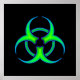 Schwarzes Poster mit grün-blauer Biogefährdung.