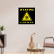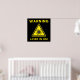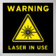 Gelbe und schwarze Laserwarnsymbol mit "Warnung - Laser im Einsatz" Text.