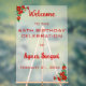 Ce panneau acrylique modifiable présente des messages et des informations sur un événement sur un look de verre dépoli et avec des fleurs rouges dans deux coins. Le texte est modifiable, allez-y et changez les détails ainsi que la couleur, la taille et le style de la police. Ce signe peut être utilisé pour tout événement : retraite, anniversaire, anniversaire, etc. Profitez de votre nouveau signe acrylique Fleurs rouges modifiables!