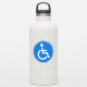Autocollants ronds avec le symbole classique handicapé, un homme en fauteuil roulant sur un arrière - plan bleu.