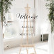 Design chic minimaliste moderne noir et blanc simple typographie script acrylique transparent mariage signe d'accueil. ++++++++++++++ Veuillez noter que les couleurs de l'arrière - plan et du texte peuvent être modifiées. ++++++++++++++++ Idéal pour des célébrations mariages élégantes et élégantes ou des anniversaires.