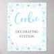SIGNE DE LA STATION DE DÉCORATION DE COOKIE - BLEU D'HIVER & PARTIES SCINTILLANT D'ARGENT THÈME DES FLAKES DE NEIGE - 8x10