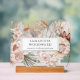 Cette enseigne d'entreprise en acrylique présente un design fleur sauvage en bois de couleur crème et en terre cuite, parfait pour les créateurs de vêtements et les propriétaires de boutique. Illustré de protéa, de pampas, de rose et de feuilles de palmiers, il ajoute une sensation terrestre et organique à votre exposition. Idéal pour les foires artisanales, les salons, les pop-up ou les studios de vente au détail, ce panneau de marque aide à élever votre petite entreprise avec style naturel et élégance.