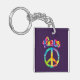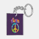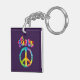 porte - clé en acrylique à look rétro des années 70 dispose d'un panneau de paix de teinture à cravate super avec texte courbé sur arrière - plan rouge foncé