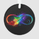 Symbole artistique à l'infini avec belle plume arc-en-ciel sur arrière - plan blanc. Style tatouage.