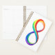 Symbole lumineux de l'infini à partir de couches plastiques de couleurs saturées rouge, jaune, vert, turquoise, bleu et violet sur l'arrière - plan blanc.