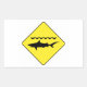 Autocollant rectangulaire avec un panneau de signalisation jaune avec une icône "avertissement requin".