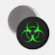 Symbole universel de biodanger en vert néon sur un arrière - plan noir.
