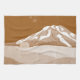 Eine Abbildung der Syme Hütte auf dem Fathoms Peak, mit dem Berg Taranaki im Hintergrund. Dieses Design ist in einem braunen Monochrom gezeichnet und hat die Matariki Sterne darüber im Himmel. Ein Design für alle, die Lieben Wandern und Trampen in Neuseeland.