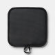 A square, multicolored pot holder with a vibrant, symmetrical rainbow pattern and a black border. Back: Solid black textured fabric with a loop.