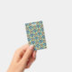 Ein faszinierendes Zusammenspiel von blauen und orangefarbenen Motiven, ergänzt durch subtile gelbe und braune Akzente, prägt dieses asymmetrische Textildesign. Die sorgfältige Farbgestaltung schafft ein Gefühl von Ausgeglichenheit und Harmonie, das es zu einer fesselnden Ergänzung zu jedem Raum macht.