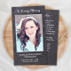 Cartes de prières funéraires Rustiques de Chalkboard Sympathy. Cette simple carte de prière commémorative présente un design de tableau de bord rustique. Avant "In Loving Memory" Personnalisez cette carte de prière funéraire commémorative avec vos proches photo, nom & dates, et sentiment. Retour ~ Poème 'Afterglow', qui peut être personnalisé, s'il vous plaît tendre la main si vous voulez un design avec un poème spécifique autre que. Cette carte de prière commémorative sera un souvenir précieux, pour les services funéraires et la célébration de la vie. DROIT D'AUTEUR © 2020 Judy Burrows, Black Dog Art - Tous droits réservés. Carte de prière de la photo commémorative des funérailles rustiques