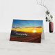 Eine Gruß- oder Notizkarte, um Ihr tiefstes Beileid und Ihre Unterstützung auszudrücken. Diese Karte zeichnet sich durch einen Sonnenuntergang über einer hügeligen Landschaft in lebhaften Farben aus.