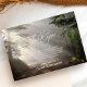 Élégante sympathie & mémoire merci carte photo. Facile à ajouter photo / photo de votre être aimé. Paysage forestier d'automne avec le soleil culminant à travers. dos arrière - plan noir. Donnez-les pendant ou envoyez-les après les funérailles. Ça fait du bon souvenir. Ajoutez votre message de remerciement. Voir d'autres comme "dans la mémoire aimante"