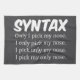 Eine lustige Typografie-Illustration mit der Wortsyntax und dann einigen Sätzen, die erklären, wie wichtig die Platzierung von Wörtern ist, wenn man schreibt. Das lustige Design ist, sich die Nase zu pflücken. Das Wort wird nur in verschiedene Positionen des Satzes verschoben, um ihm eine andere Bedeutung zu verleihen. Ich picke mir nur die Nase. Dies ist ein Design, das für jeden geeignet wäre, der die englische Sprache lernt oder unterrichtet.