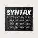 Eine lustige Typografie-Illustration mit der Wortsyntax und dann einigen Sätzen, die erklären, wie wichtig die Platzierung von Wörtern ist, wenn man schreibt. Das lustige Design ist, sich die Nase zu pflücken. Das Wort wird nur in verschiedene Positionen des Satzes verschoben, um ihm eine andere Bedeutung zu verleihen. Ich picke mir nur die Nase. Dies ist ein Design, das für jeden geeignet wäre, der die englische Sprache lernt oder unterrichtet.