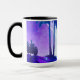 Genießen Sie Ihr Lieblingsgetränk aus dieser künstlerischen Tasse mit Synthwave-Motiv. Die Szene vereint Palmen, einen strahlenden Himmel und die Silhouette eines futuristischen Motorrads in lebendigen Violett- und Blautönen. Perfekt für Fans von Digital-Art, Retro-Ästhetik und außergewöhnlicher Wohnaccessoires.
