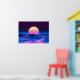 Retro futuristische Landschaft und Sonne über den Bergen Poster für Surreal Outrun/Retrowave/Synthwave Liebhaber!