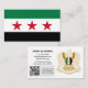 Carte de visite : Un carte de visite de Syrie moderne avec le drapeau de la Syrie d'un côté (drapeau de l'indépendance syrienne adopté à partir du 8 décembre 2024) et vos détails avec le scannable QR Code, petit emblème de Syrie de l'autre côté. Customisez facilement le lien dans le code QR pour votre site Web ou numéro de mobile, personnalisez le nom, les coordonnées ou changez de drapeau sur le côté pour le logo de votre entreprise, la photo personnelle ou toute autre image. Faites-le votre entreprise ou simplement carte pour déménager la maison.