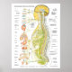Image anatomique colorée montrant le système nerveux autonome par rapport à la colonne vertébrale et aux organes internes. Les nerfs sont codés en couleur représentant le système sympathique, parasympathique et cérébral.