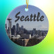 Die Skyline von Seattle Washington auf diesem Foto ist ein Gedenkschmuck. Die Raumnadel ist am verlassen und der Rainier ist im Hintergrund sichtbar. Feiern Sie Erinnerungen Ihres Urlaubs oder einen Ort, den Sie Liebe. Wählen Sie Ihre Schmuckform aus.