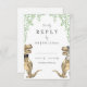 Apportez un rugissement d'excitation à votre jour de mariage avec cette carte de réponse RSVP de mariage Dinosaur, avec une mariée et mariée T-Rex ludique entourée de verdure botanique aquarelle. Avec une typographie moderne et fantaisiste et des modèles faciles à personnaliser, cette carte capture l'esprit amusant de votre histoire d'amour préhistorique. Le design unique de T-Rex, rendu dans des teintes brunes et vert eucalyptus, est un charmant mélange de romantisme et de nature ludique, le tout mis en vie par l'artiste de talent Catherine Sweetman. Parfait pour votre réception de mariage ou dîner de répétition, ce RSVP fait partie d'une suite mariage complète qui vous offre tout ce dont vous avez besoin pour rendre votre mariage aussi mémorable et joyeux que votre amour. Laissez ce design ludique et créatif donner le ton à votre fête à thème de dino !