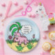 Niedliche handgezeichnete Cartoon rosa Dinosaurier Geburtstagsfeier Teller für ein kleines Mädchen Dinosaurier Thema Geburtstag.