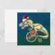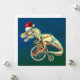 Feiern Sie die Saison mit einer prähistorischen Drehung in diesem skurrilen Gemälde mit einem T-Rex (Tyrannosaurus Rex) mit einer Weihnachtsmannmütze und einem Vintagen Penny-Farthing-Fahrrad vor blauem Hintergrund. Dieses fantasievolle Design verbindet die mächtige Präsenz eines Dinosauriers mit dem Retro-Urlaubsszauber, die sich in spielerischen Pinselstrichen und festlichem Flair vereinen. Ideal für Dinosaurier-Fans, für einen abwechslungsreichen Spaß und für jeden, der die Kunst so unerwartet wie angenehm mag. Eine fröhliche Jurassic-Fahrt, die großen Beifall bringt.