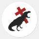 T-Rex mit Kreuz Runder Aufkleber