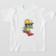 Break the speed limit with this dynamic illustration of a turtle shredding on a skateboard. The determined reptile is geared up in a bright yellow safety helmet and protective goggles, leaning forward for maximum aerodynamics. Riding a sleek red board, the character leaves a trail of dust and speed lines, capturing a sense of rapid motion and fierce concentration in a vibrant cartoon style.