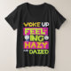 Own your morning fog with style! This high-energy, colorful graphic is the ultimate anthem for the sleep-deprived: WOKE UP FEELING HAZY AND DAZED.