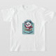 A joyful panda with closed smiling eyes pops out of an open teal lunchbox, wrapped in a cozy red scarf and waving with a tiny paw. Cute snack pieces float around the character like confetti, with a small heart accent and colorful bento-style treats filling the box, all drawn in bold outlines and smooth, vibrant cartoon shading.