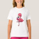 This design features a humorous and lovely cartoon flamingo engaging in a beauty routine. The bright pink bird is sitting with one long leg crossed over the other, carefully applying vivid purple-pink nail polish to its claws. It is holding the polish bottle in one wing and the brush in the other, with a focused yet happy expression. The scene captures a fun moment of self-care and relaxation against a plain light gray background.