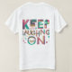 Der "Behaltend Lachen auf" T - Shirt zeigt ein lebendiges und ermutigendes Design, das Positivität ausstrahlt. Die Phrase ist fett, lebendig, umgeben von spielerischen Elementen wie abstrakten Formen oder einem stilisierten Smiley. Dieses Design ist eine Erinnerung, Freude und Widerstandskraft anzunehmen, unabhängig von den Herausforderungen. Dieser T - Shirt ist perfekt für jeden, der Spaß und Optimismus schätzt. Er ist sowohl ein Statement als auch ein Stimmung-Booster.