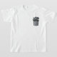 A wide‑eyed cartoon raccoon peeks out from inside a silver trash can, gripping the rim with tiny paws while wearing a curious, innocent expression. The metallic gray tones of the bin contrast with the raccoon’s dark mask and glossy eyes, creating a clean, bold visual against the black background. Smooth shading, thick outlines, and rounded shapes give the illustration a cute, playful, and slightly mischievous personality.