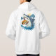 Lebhafter Cartoon-Hai, der einen laichen Burger gegen mondbeleuchtete Wellen zerschmettert, kühn gefärbte Farben, spielerische Stimmung und ozeanische Laune für ausgefallene Kleidung.