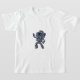 A dynamic and electrifying illustration of a futuristic robot constructed entirely from stacked audio speakers and subwoofers. The character features a retro monitor face with glowing cyan pixelated eyes and a digital equalizer mouth. Bright blue bolts of electricity crackle around its metallic joints as it strikes a confident dance pose and waves, combining sleek grey mechanical details with a high-energy musical vibe.