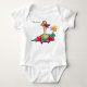 Dieses Bild zeigt ein weißes Baby-Kleidungsstück, das mit einer Cartoon-Ente mit einigen Blume bedruckt ist. Der Text "Dein Text" über der Ente weist darauf hin, dass es sich um ein anpassbares Design handelt. Der spielerische, sportliche Charakter macht es zu einer lustigen und einzigartigen Wahl für thematische Babywäsche oder personalisierte Geschenke.
